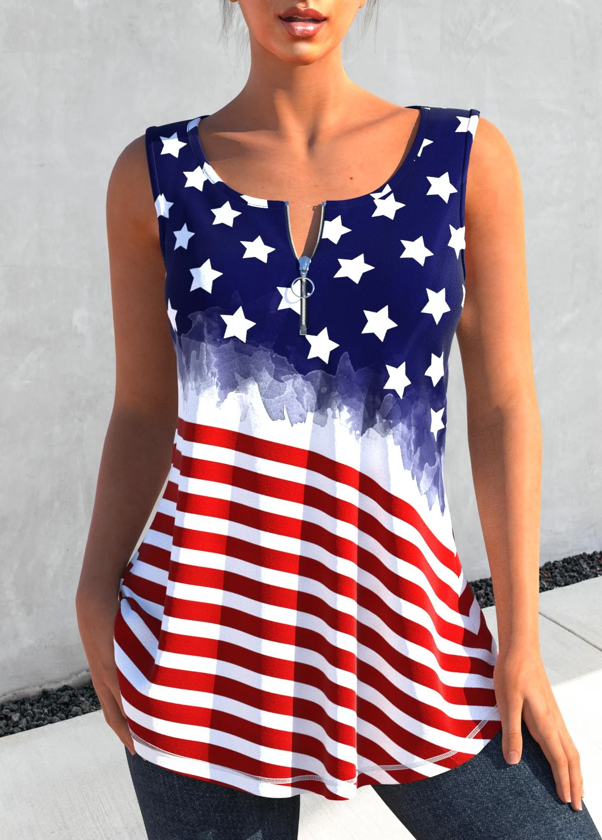 Be the first to review “American Flag Print Zipper Navy Tank Top” Cancel reply