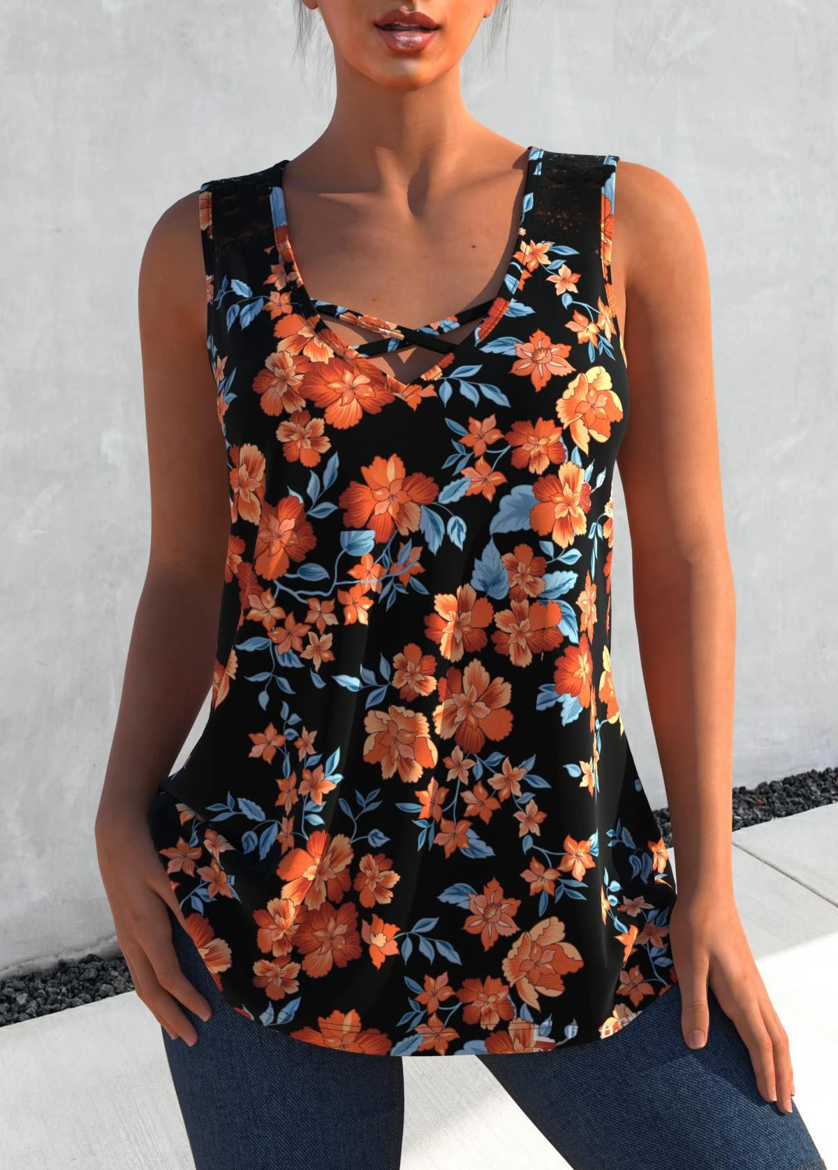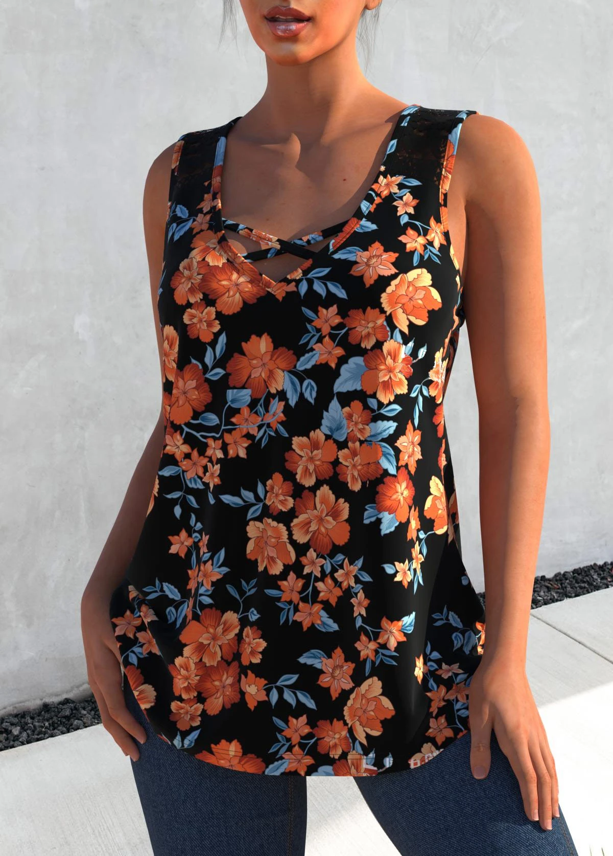 Be the first to review “Black Floral Print Lace Stitching Tank Top” Cancel reply