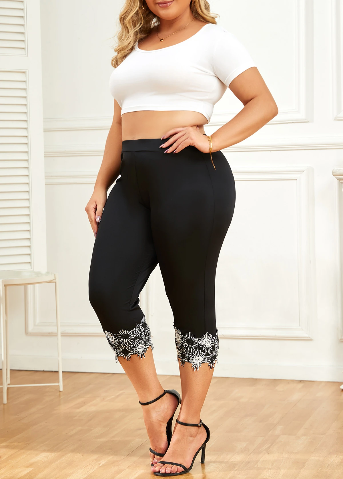Black Plus Size Patchwork Skinny Elastic Waist Pants