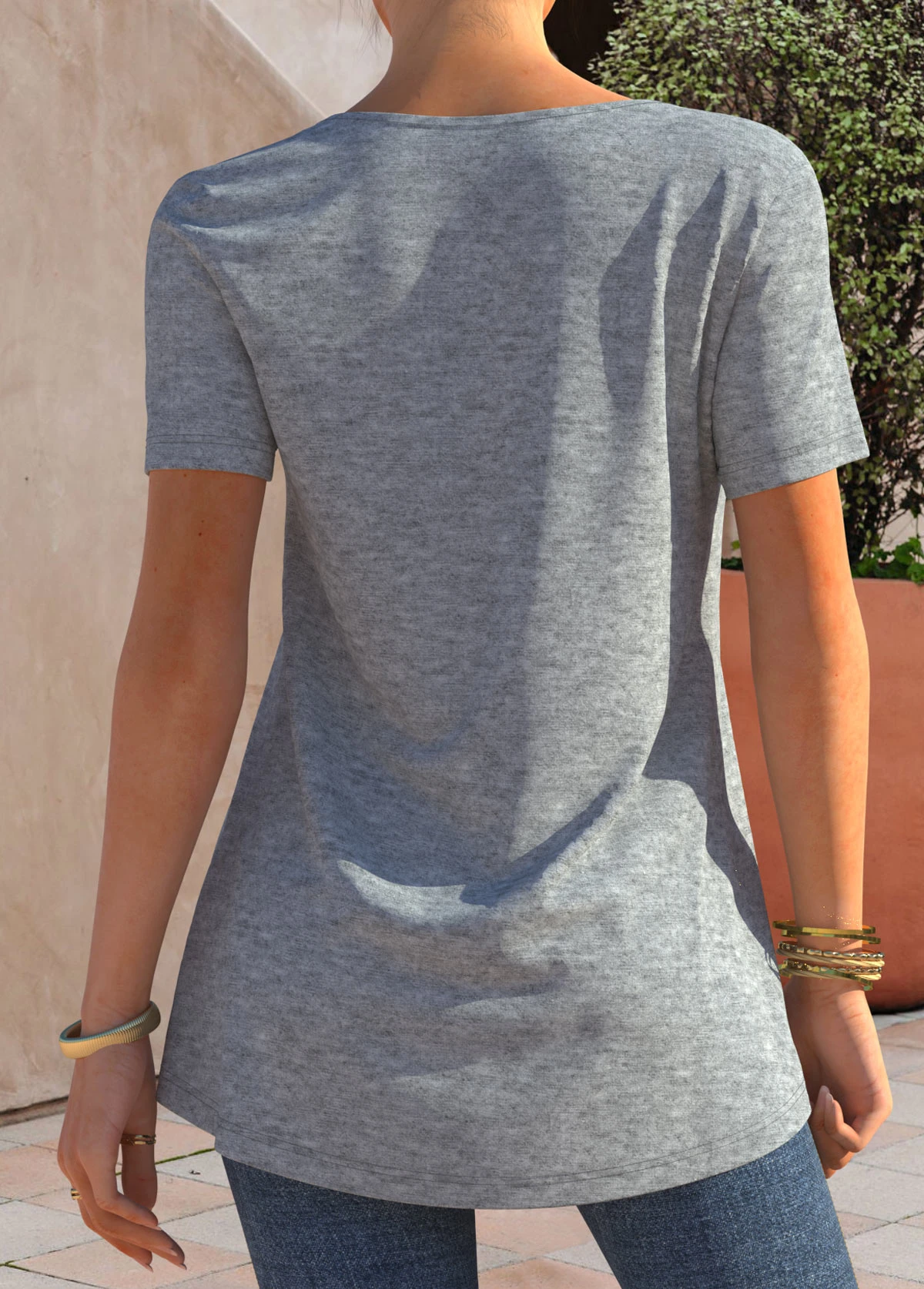 Button Detail Short Sleeve Grey Marl T Shirt
