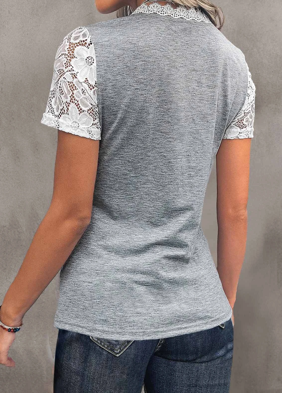 Light Grey Marl V Neck Lace T Shirt