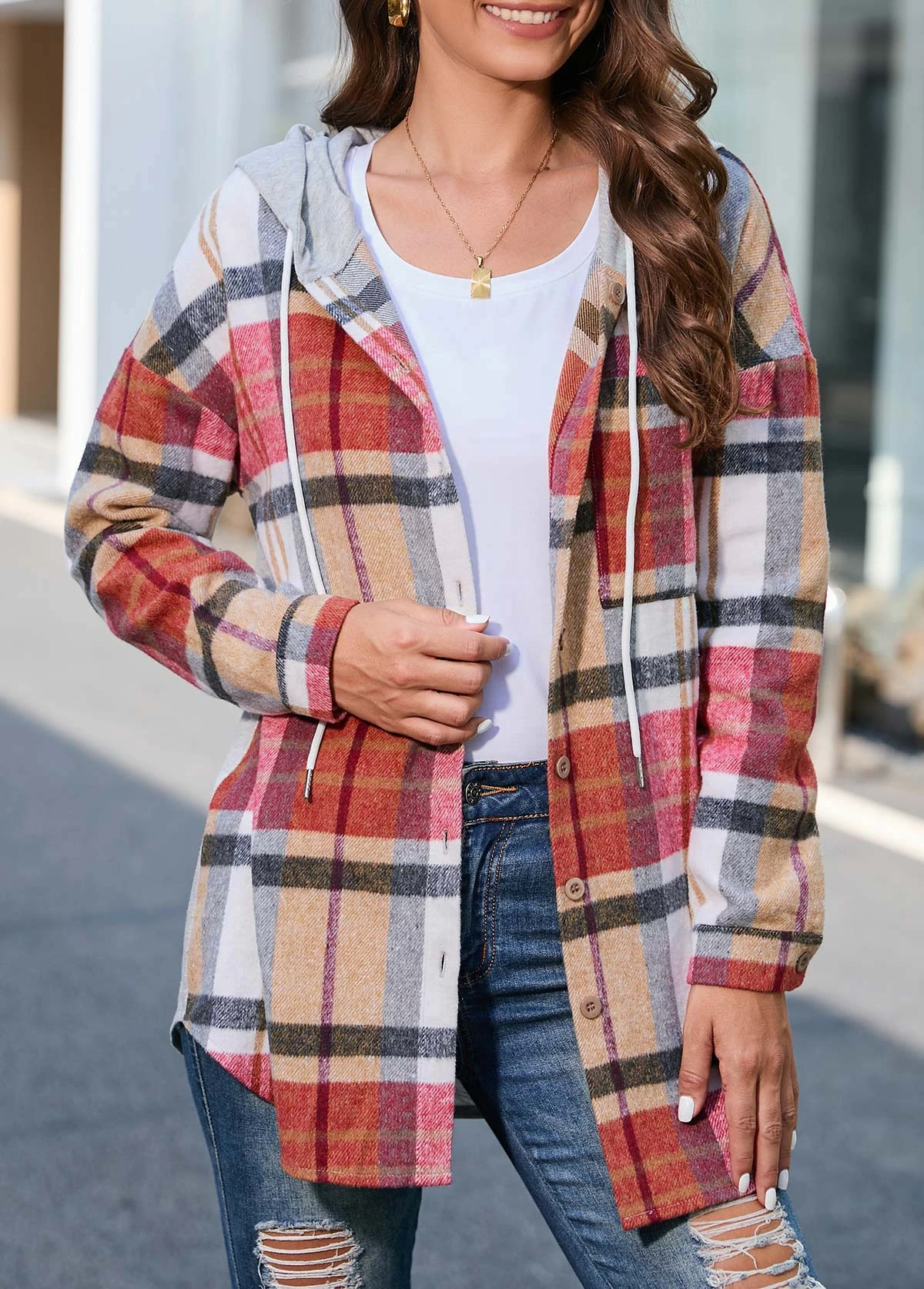Plus Size Multi Color Plaid Long Sleeve Coat