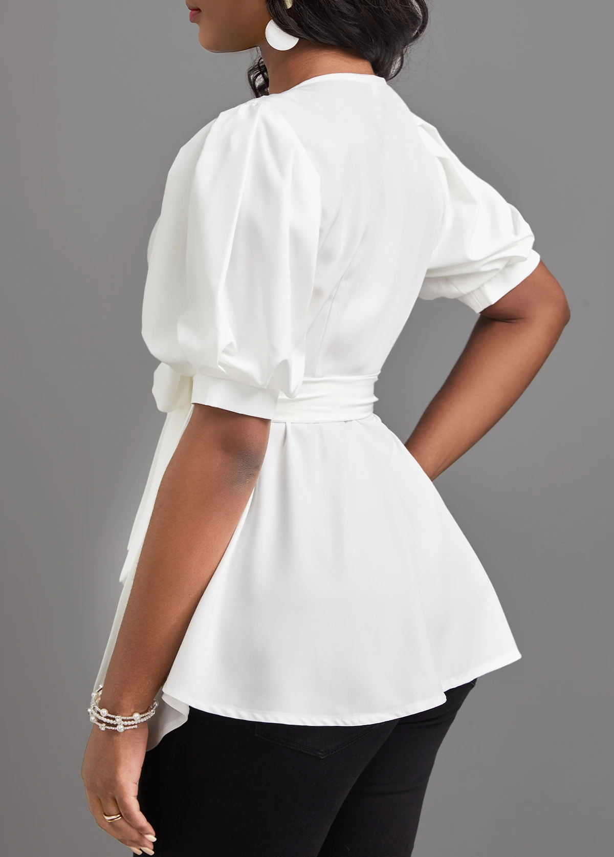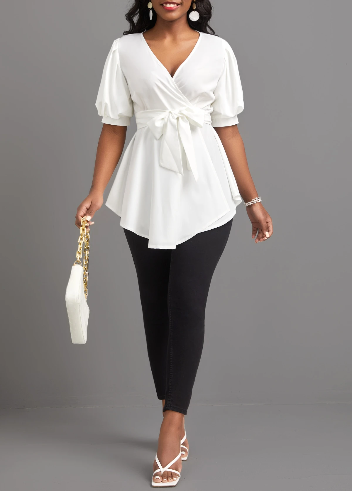 Be the first to review “Short Sleeve Asymmetry White V Neck Belted Blouse” Cancel reply