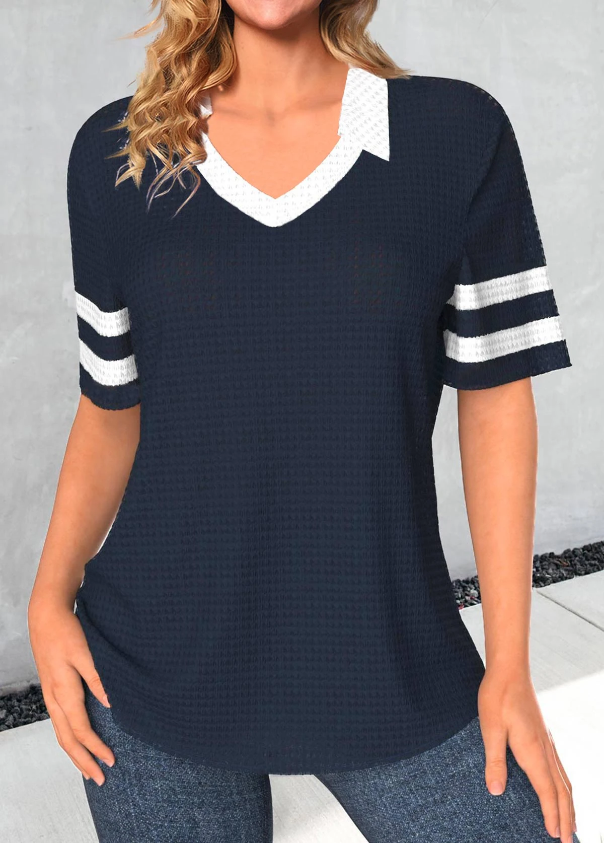 Short Sleeve Patchwork Navy Polo Collar T Shirt