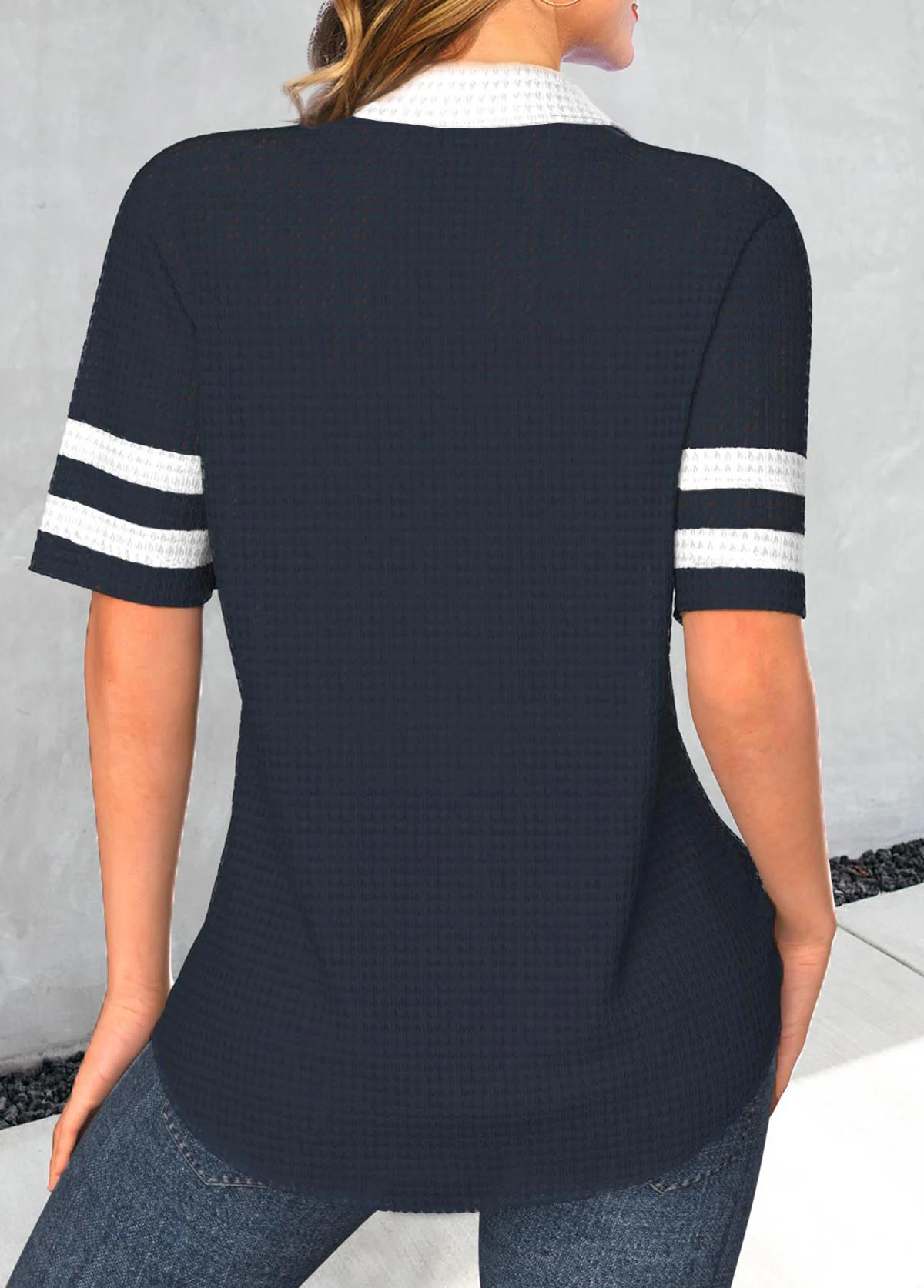 Be the first to review “Short Sleeve Patchwork Navy Polo Collar T Shirt” Cancel reply