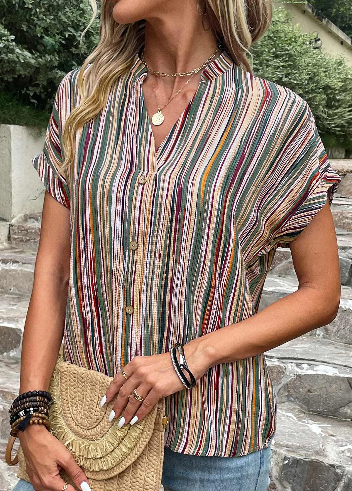 Be the first to review “V Neck Striped Button Green Blouse” Cancel reply